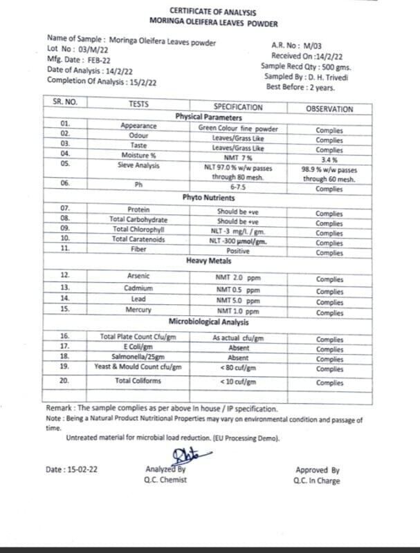 - DID YOU KNOW : Moringa has many names like Drumstick, Moringa Oleifera, Sahajan, Shevga, Munaga, Murungai, Mashinga etc. Moringa leaf extract can also be used as a food preservative