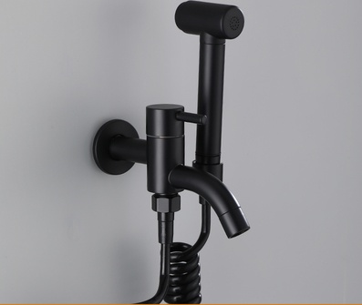 Model D1: All copper body mop pool faucet (5 years warranty) + 2m telephone cord hose + all copper button pressurized spray gun